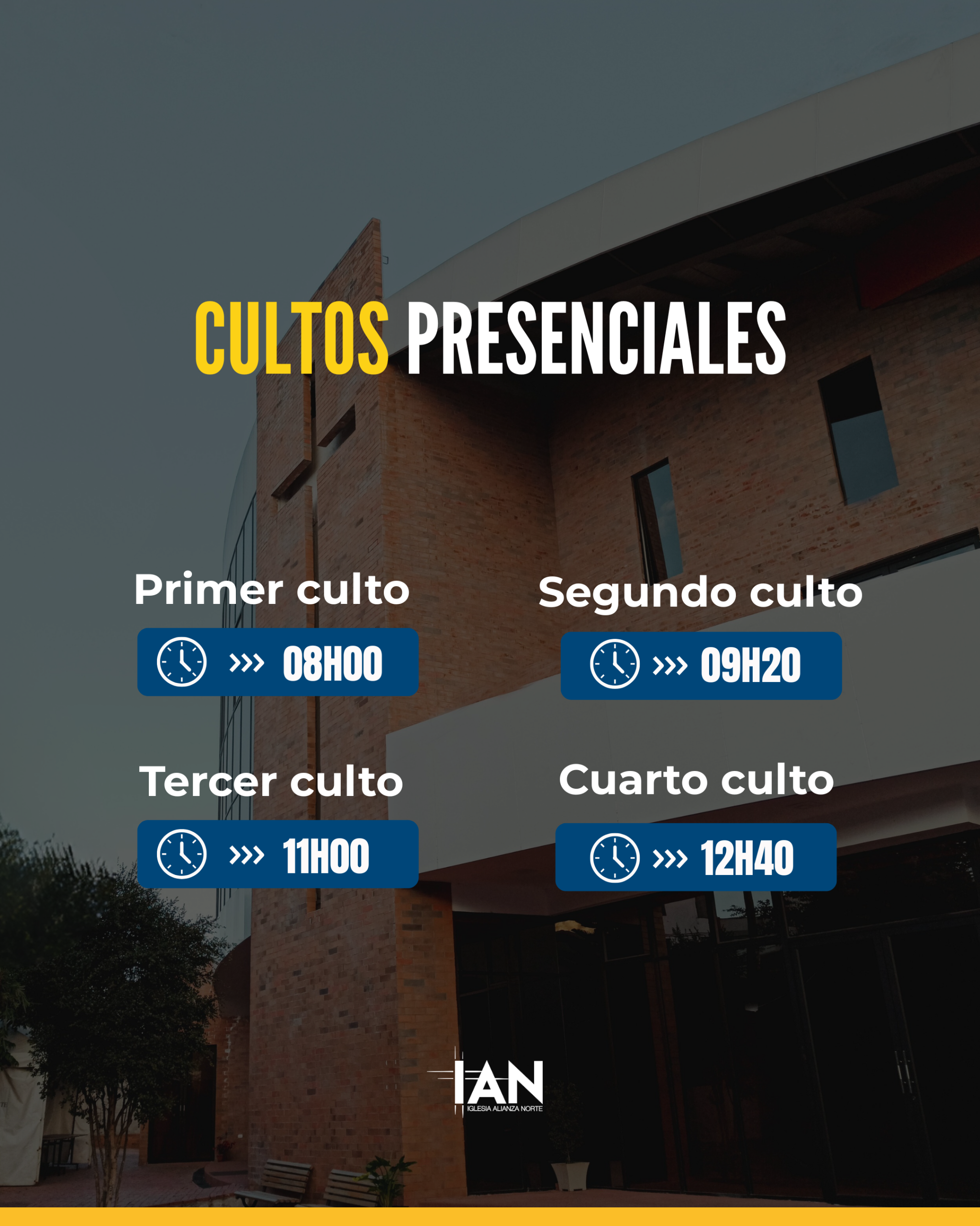 Te invitamos a nuestros cultos presenciales que tenemos los días domingos en cuatro horarios: