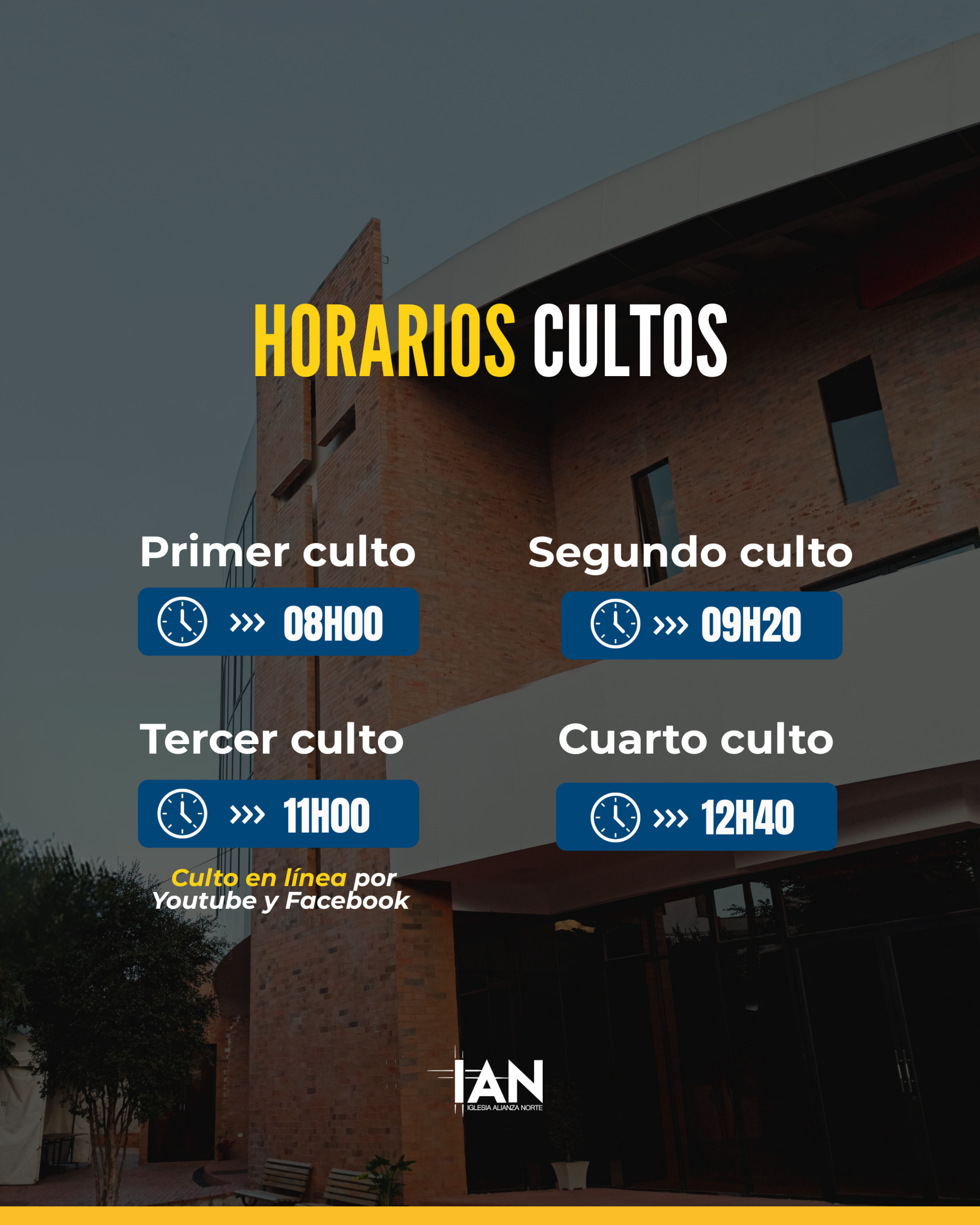 Te invitamos a nuestros cultos presenciales que tenemos los días domingos en tres horarios: